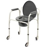 Такие санитарные приспособления широко востребованы у пациентов благодаря их простоте, удобству и невысокой стоимости. Конструкция стула-туалета на ножках состоит из металлического каркаса и сиденья, оборудованного санитарной емкостью. Устройство может использоваться также в качестве дополнительной опоры при использовании обычного унитаза – санитарная емкость в этом случае снимается.