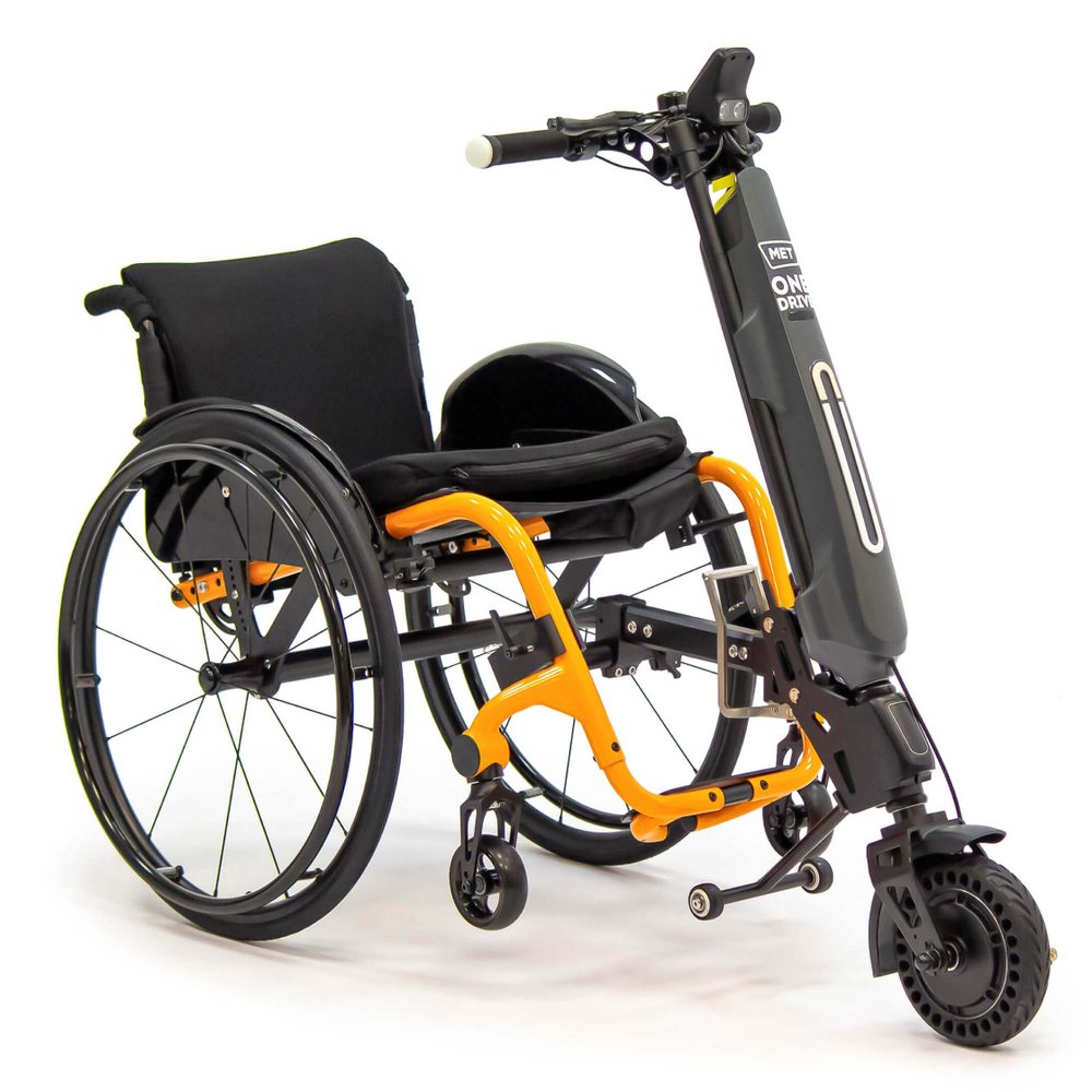Электропривод для инвалидной коляски MET OneDrive 20 - легкая электрическая приставка для механических инвалидных колясок. Модель, которая мало весит (всего 10 кг), может превратить обычное кресло-коляску в электрическое за несколько минут.