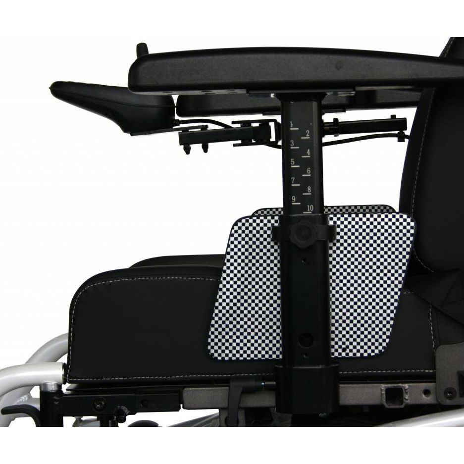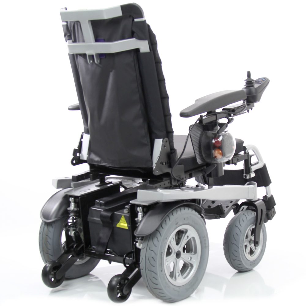 Технологичная пневматическая подвеска позволяет коляске подстраиваться под индивидуальные особенности пациента благодаря насосу, который может изменять уровень давления в воздушных амортизаторах. Присутствует возможность смены привода с передних на задние колеса и наоборот, что особенно ценно благодаря возможности поворота кресла на 180 градусов.