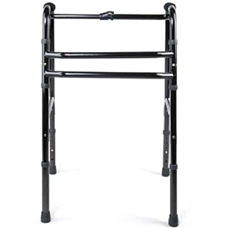 Рукоятки, для комфортного передвижения покрыты мягкими эластичными накладками. Ходунки можно регулировать по высоте, что является одним из основных плюсов конструкции. Единый центральный замок позволяет складывать ходунки по вертикали, что позволяет хранить их в удобном месте, а также легко и быстро транспортировать. Покупая данный товар, вы получаете надежного металлического товарища на время вашего лечения.