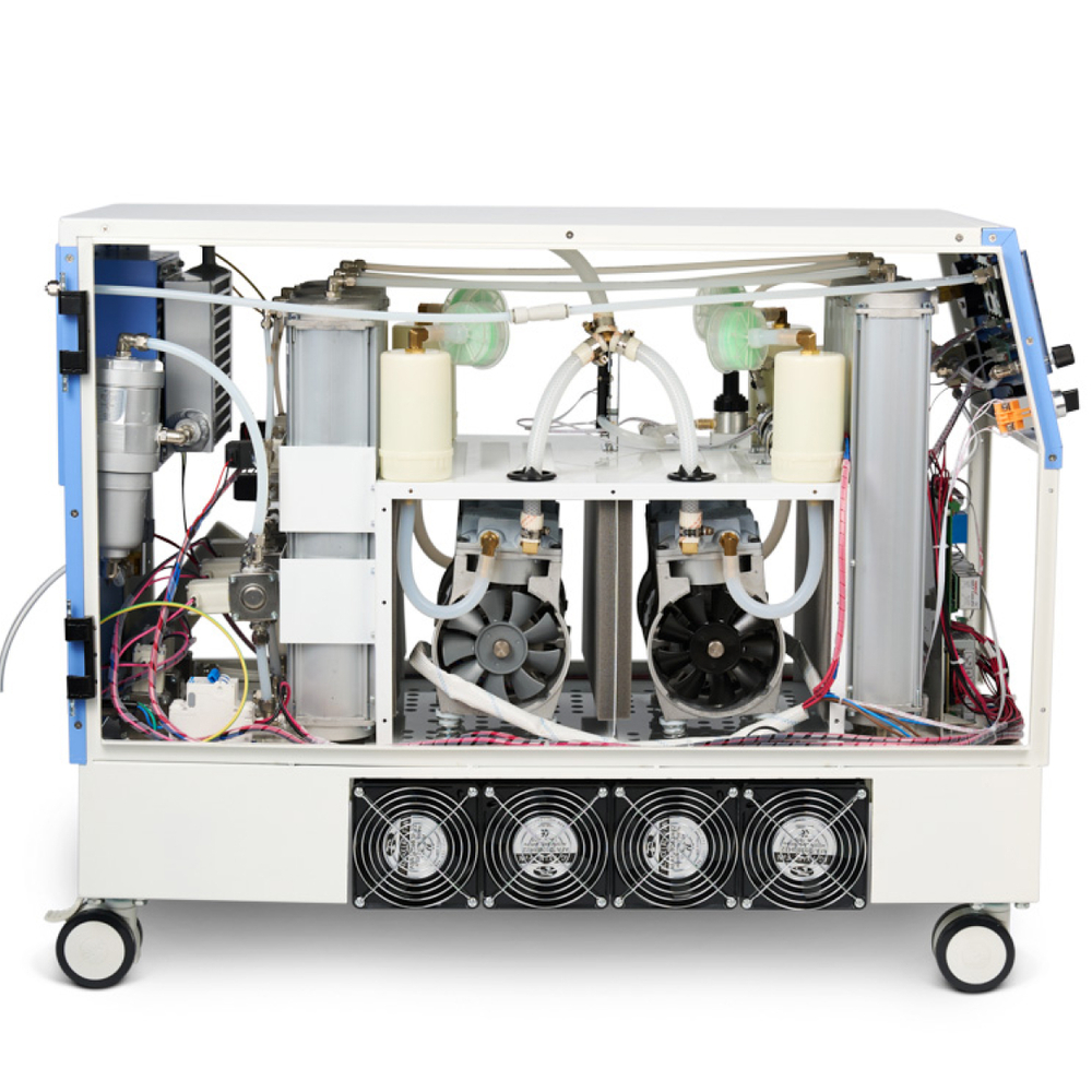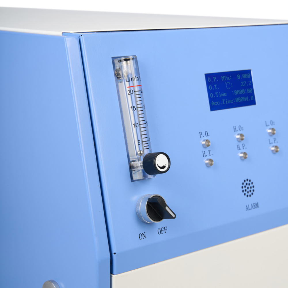 Применяется в медучреждениях при лечении заболеваний легких, поддержки жизнедеятельности пациентов, незаменим в реанимационных и операционных отделениях. Оснащен манометром и подробной световой индикацией давления и концентрации кислорода.
