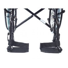 Подножки с возможностью регулировки по длине, откидываются и легко снимаются. Так же, опоры под стопы откидные, оснащены ремнями.