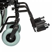 Кроме того, передние колеса широкие, дают хорошую проходимость, и могут при необходимости сниматься. Кресло оборудовано удобной спинкой, сидением, а мягкие подлокотники укорочены, за счет чего стает доступным подъезд к столу.