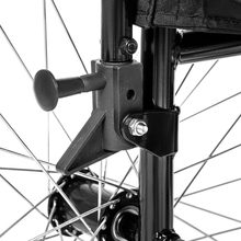 Рама коляски выполнена из высокопрочной стали, обладает простым механизмом складывания, не требующим дополнительных усилий и инструментов. Так же, спинка коляски оснащена дополнительным складным механизмом, а задние колеса легко снимаются, благодаря кнопочным фиксаторам.