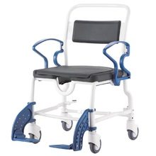 Сиденье имеет туалетный вырез и вырез для подмывания. Съемные подлокотники откидываются, позволяя самостоятельно садиться и вставать. Подножки также вращаются и снимаются. Высоту расположения подножек можно адаптировать под пользователя. Колеса оснащены фиксаторами с тормозами для дополнительной безопасности и удобства.