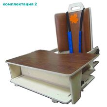 Грудная часть тела фиксируется креплением «Уздечка», а тазобедренная — набедренным креплением. Есть регулируемые по высоте спинки. К сидению прилагается прикрепляемый складной столик с полукруглой выемкой. Мягкие элементы на поролоне, обтянуты искусственный кожей.