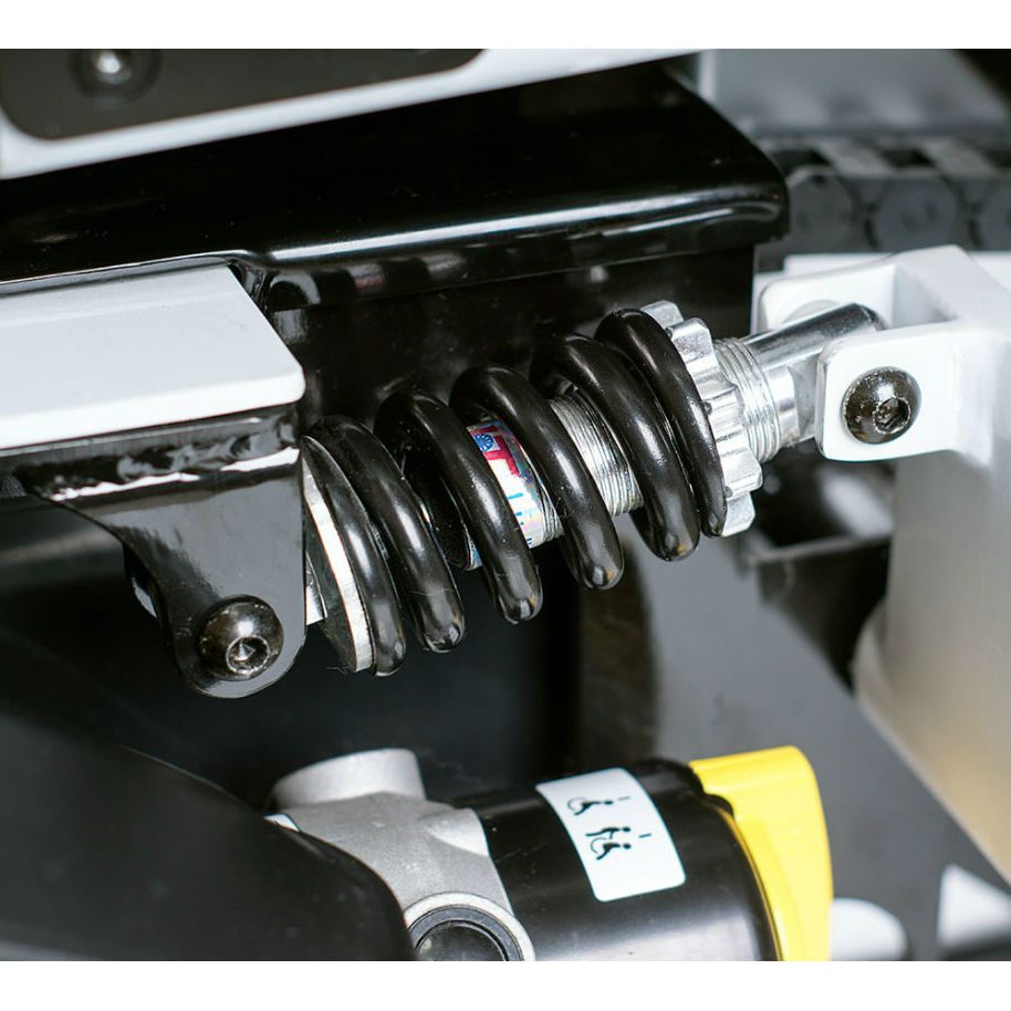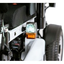 Данная модель оборудована съемным подголовником с боковой поддержкой, который настраивается по высоте и углу наклона. Сиденье регулируется по глубине и высоте с помощью контроллера. Съемные откидные подножки регулируются по длине голени и углу наклона с помощью контроллера. Также коляска снабжена светодиодным освещением для прогулок и антиопрокидывателем.