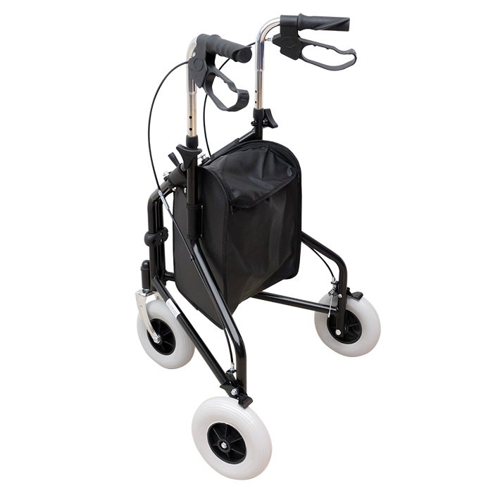 Роллаторы RollTrio оборудованы достаточно большой сумкой из прочной ткани для личных вещей или покупок. Опоры покрыты мягкими прорезиненными накладками. Для большей безопасности было предусмотрено два тормоза – стояночный и ручной.