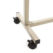 Наличие четырех колес диаметром по 50 мм со стояночными тормозами позволит транспортировать столик в пределах медицинского учреждения или дома. Кроме этого данная модель регулируется по высоте, что делает ее подходящей к любому типу кровати. Устройство легко и удобно транспортируется и не занимает много места.