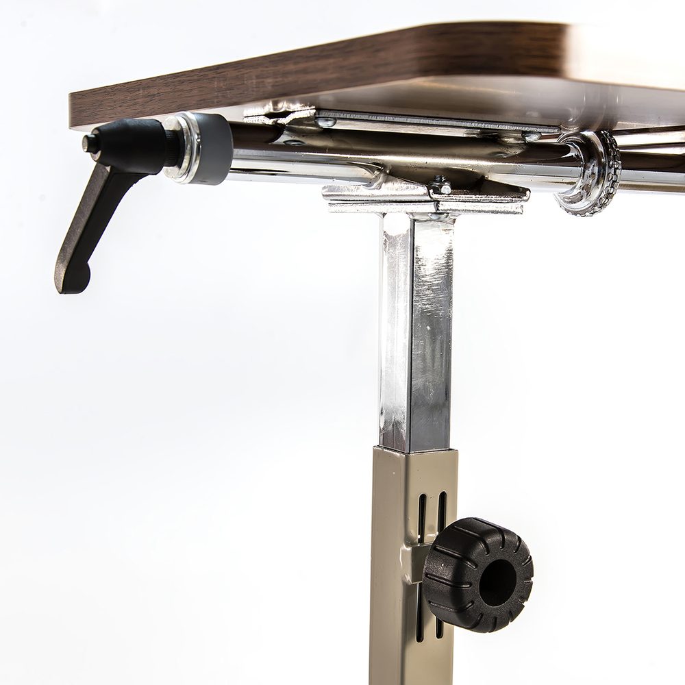 - Высота столика регулируется с помощью винта на оси конструкции.